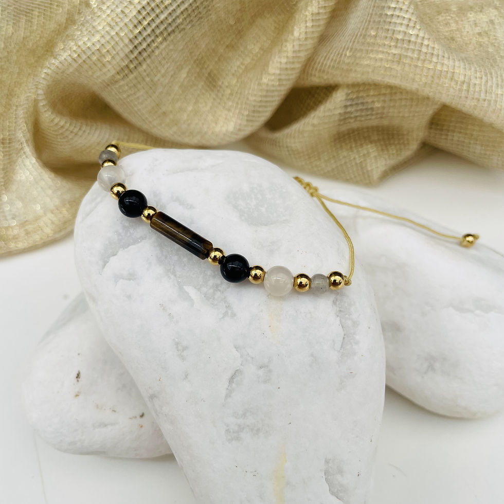 Doğal Kaplan Gözü Taşı Bileklik Obsidyen Aytaşı & Beyaz Akik Boncuklu Bileklik